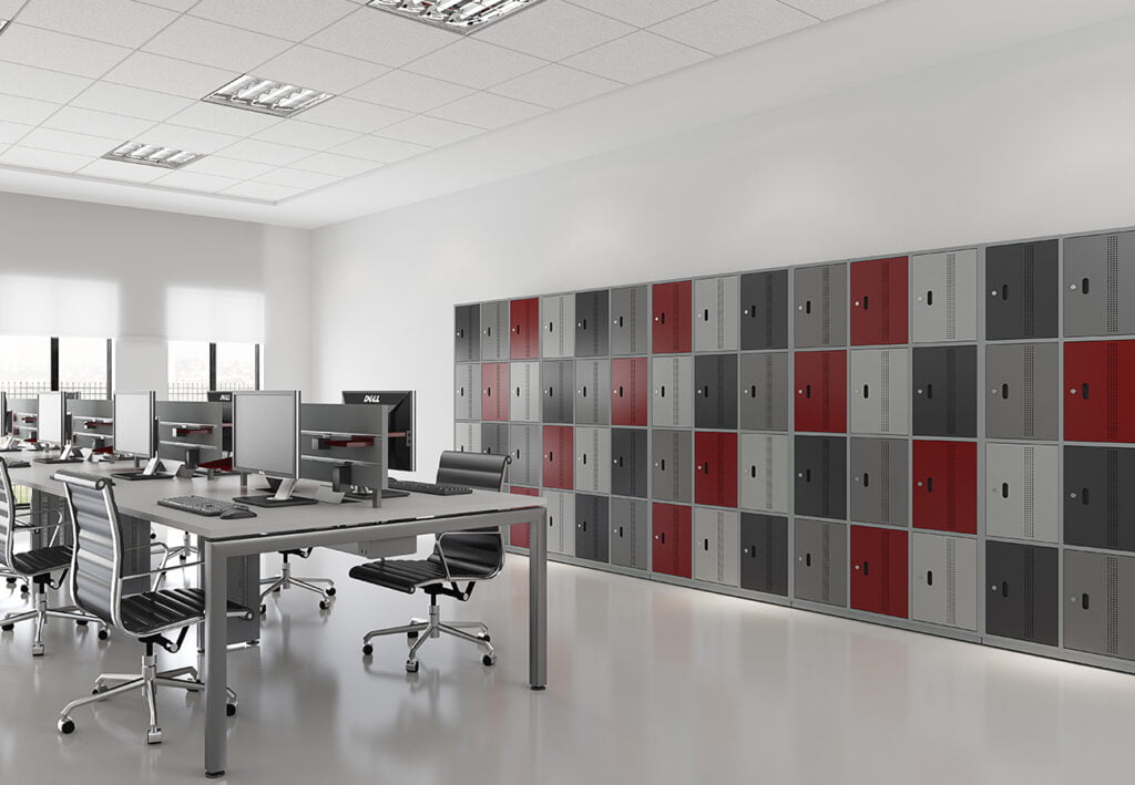 Proporcione mais segurança aos pertences pessoais de seus colaboradores, fornecedores ou clientes com a nossa Linha Lockers. Nela, os armários são disponibilizados individualmente com sistema complementar. A configuração dos armários é personalizada conforme a necessidade de cada espaço corporativo podendo ter módulos de 1 a 6 portas e a quantidade de colunas também é personalizada. Na Linha Lockers as portas são de aço com chaves ou com pitão para cadeado e também há portas de madeira com chave. As bases dos armários são feitas de três modelos: base aberta, base fechada e base tubular.